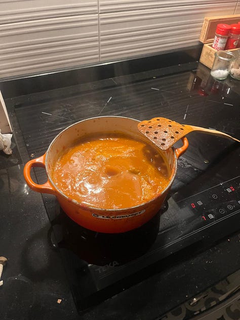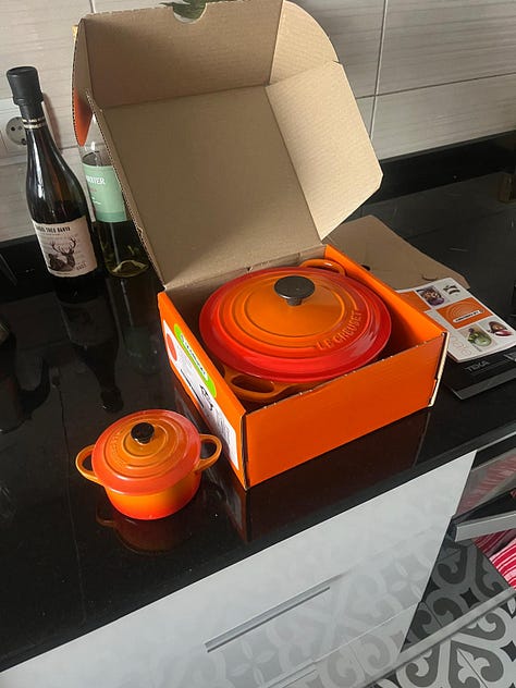 Ha sigut el meu any tradwife. És a dir, he cuinat força. Resulta que van fer descomptes a la botiga Le Creusset de Passeig de Gràcia, i hi vaig anar a treure el cap, sota el pretext d’acompanyar la meva amiga Eugènia (que cuina molt bé i molt sovint i per tant podia justificar sense problemes la compra d’un estri culinari caríssim). Però evidentment vaig acabar caient al consumisme i em vaig comprar la cassola de ferro fos petita, que és per dues persones. Targetassu com si fos rica. I és clar, després em vaig sentir malament, però no només per la compra impulsiva. Una mena d’angoixa suau però afilada em pujava pel coll mentre carretejava la pesada capsa taronja amb el logo de Le Creusset per tota la línia verda del metro. “En quantes mudances hauré de fer exactament això que estic fent ara?”, pensava. “Per què m’he cregut que em puc comprar un objecte de persona sedentària, assentada, ordenada?”. I sobretot: “i si al meu següent pis, aquesta olla de la mida de les calderes del Pere Botero (incís: aquí us heu d’imaginar que al meu cervell jo duia al damunt de les espatlles una cassola colossal, enorme, grossa com la pedra que Síssif arrossega muntanya amunt, amb la petita diferència que aquí la mutanya eren les escales de la parada de metro Tarragona) NO HI CAP?”. La vaig guardar a la cuina, darrere de tots els tuppers sense tapa que s’acumulen sota la pica, i no vaig gosar mirar-la durant dos mesos. Un cop passat el tràngol he fet cremes de verdures de tot tipus, sofregits, pastes gratinades i fricandó de seitan. Nyam.
