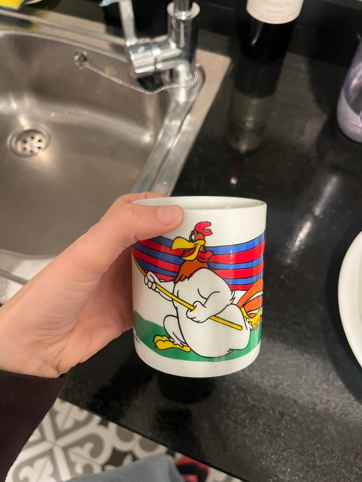 4.2. Una tassa del Barça en colaboració amb Warner Bros? A veure. Jo aquest any he estat molt culer, ok? Vaig decidir que m’aprendria de memòria tots els jugadors del Barça i miraria els partits perquè em semblava que el panorama estava divertit i així tindria moments de lleure interessants. Ho he fet i ho recomano, els homes són més feliços que nosaltres precisament per coses com aquestes. Aleshores l’àvia de la Mercè tenia una tassa del Barça i em va semblar pertinent agafar-la, però duia la gallina aquesta rara que no sé què és de Warner Bros i ho vaig buscar al google i es veu que l’any 97 (l’any que vaig néixer xdddddd) el Diari Sport va fer aquesta col·lecció especial de dotze tasses del Barça amb personatges de Warner Bros. Alguns sí que sé qui són (en realitat només el Piolín i el Pato Lucas). Total, que a todocolección la col·lecció sencera val 120 euros. Em fa una gràcia tenir aquesta tassa… és la meva segona tassa preferida. La primera és un souvenir que em vaig comprar a Taüll i posa: ROMÀNIC CATALÀ amb la Dextera Domini al mig.